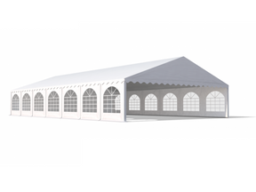 Et værbestandig telt med vegger og tak av polyeten. Dette teltet beskytter deg mot både stekende sol og grusom vind og regnvær. Veggene på langsidene har sprosser som gir teltet en stilig og luksuriøs stil.